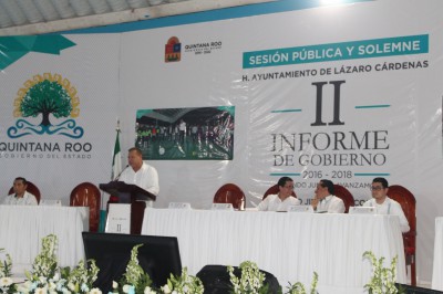 El presidente municipal de Lázaro Cárdenas, Emilio Jiménez Ancona, rindió su segundo y último informe de gobierno ante un público compuesto principalmente por empleados de confianza, al estar prácticamente ausentes las familias de las colonias de la ciuda