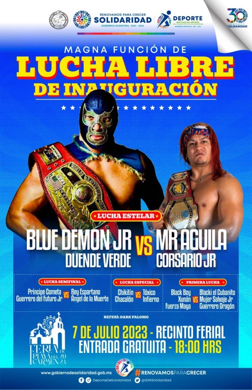 "Es una feria renovada para todos, del 7 al 16 de julio, con la función de lucha libre que presenta, por primera vez aquí, al gran Blue Demon Jr.; una cabalgata que abarcará la Quinta Avenida, vaquería, diversos artistas sobre el escenario, juegos mecánicos y todo esto será completamente gratis. No se dejen engañar por si les quieren vender los boletos” enfatizó la edil.