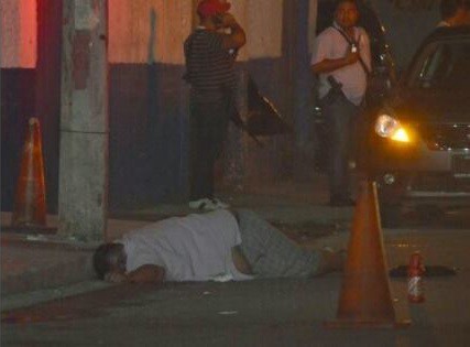 El cuerpo de la víctima, quien era de complexión robusta y vestía con una playera color blanco y short a cuadros, quedó tendido frente al bar sobre la calle boca a bajo y a un costado de éste los dos heridos.
