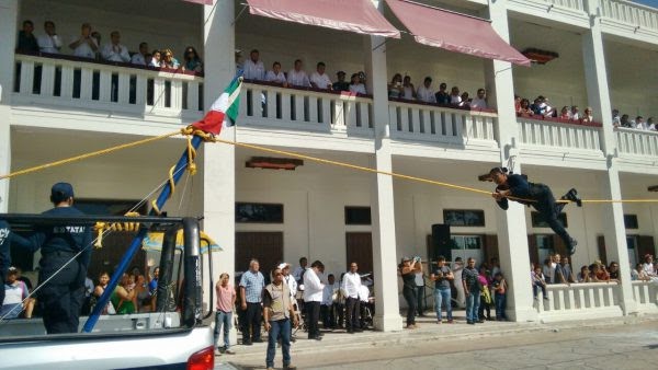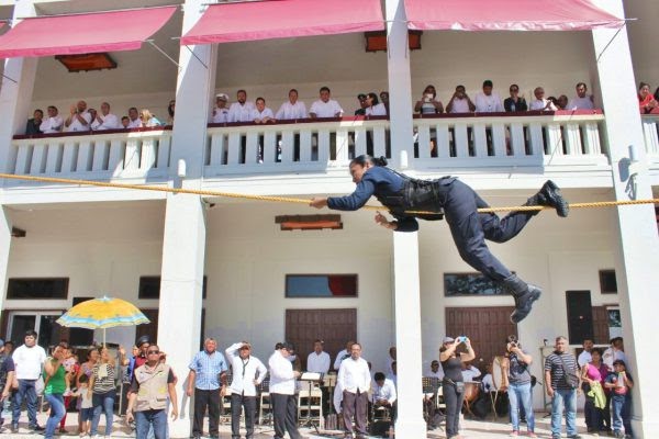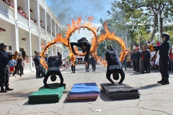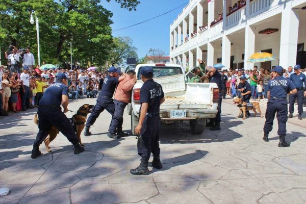 La mañana de ayer, un contingente de más de 100 agentes, dividido en 12 grupos, incluyendo a la escolta y banda de guerra, hizo gala de sus destrezas y maniobras policiales en demostraciones que provocaron un ambiente de seguridad y protección entre los asistentes, principalmente en los niños que acudieron a presenciar el despliegue en compañía de sus padres, lo que convirtió a la conmemoración de este año, en un evento familiar.