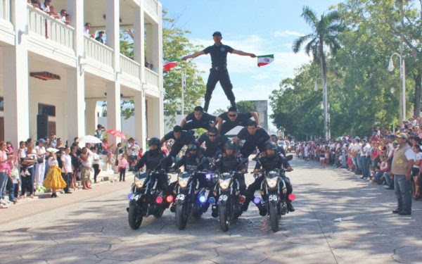 La banda de guerra, escolta de Bandera, los grupos motorizado, de voleibol, lucha libre, básquetbol, arme y desarme, taekwondo –integrado por estudiantes que son hijos de policías estatales-, cuerda rígida, contaron en todo momento con el apoyo y respaldo de sus compañeros de la Dirección de Tránsito, que mediante un operativo de seguridad con más de 250 elementos operativos y de vialidad, 15 vehículos de la PEP y 10 moto-patrullas, resguardaron el orden para que en Chetumal el desfile transcurriera con toda tranquilidad.