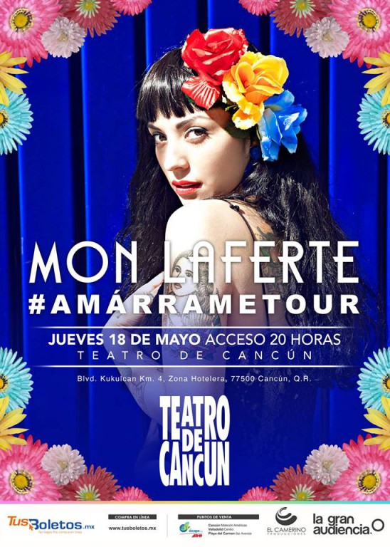 CANCÚN, Quintana Roo.- Será el próximo 18 de mayo cuando la bellísima Mon Laferte llegue al Teatro de Cancún para deleitar a todos sus seguidores con temas como “Amarrame”, “Tormento”, “Tu falta de querer” y muchas más del gran repertorio de éxitos que la han llevado a colarse al Top 50 en los charts de Billboard. Actualmente se encuentra en el puesto no. 42 de la prestigiosa lista, a sólo 3 de la cantante Alicia Keys, y a cuatro de la ganadora del Oscar, Adele.