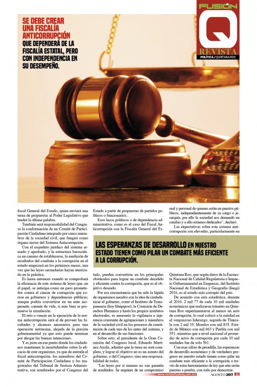 Las expectativas sobre este sistema anticorrupción son elevadas, particularmente en Quintana Roo, que según datos de la Encuesta Nacional de Calidad Regulatoria e Impacto Gubernamental en Empresas, del Instituto Nacional de Estadística y Geografía (Inegi) 2016, es el estado más corrupto del país.
