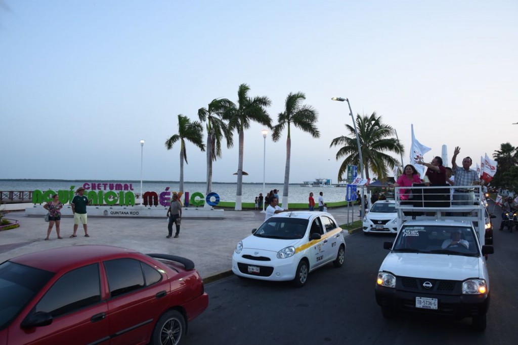 Con más de 150 automóviles y 40 motocicletas, el virtual futuro senador de la República, José Luis Pech Várguez, junto con los también futuros presidente municipal de Othón P. Blanco, Hernán Pastrana Pastrana, y diputada federal, Patricia Palma, realizaro