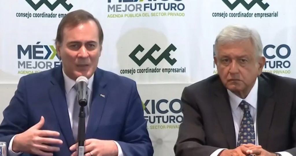 “Hemos establecido una agenda para hablar de temas macroeconómicos, de salud, de la diversificación de los mercados. Nos ha solicitado que le demos prioridad a los mecanismos para apoyar al sur del país”, dijo el presidente del CCE, que agrupa a 12 confederaciones y cámaras empresariales de todo México.