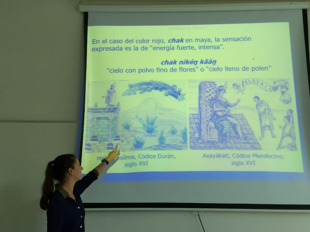 La ponente abordó su tema “¿Cultura recibida a partir del siglo XVI o cultura antigua?”, ante catedráticos y alumnos de la Universidad de Quintana Roo, en el campus de esta ciudad, en la que detalló su investigación realizada en Yucatán sobre el ka’anche’ y el huipil, entre otras manifestaciones culturales, y los relacionó con la constelación de Orión.
