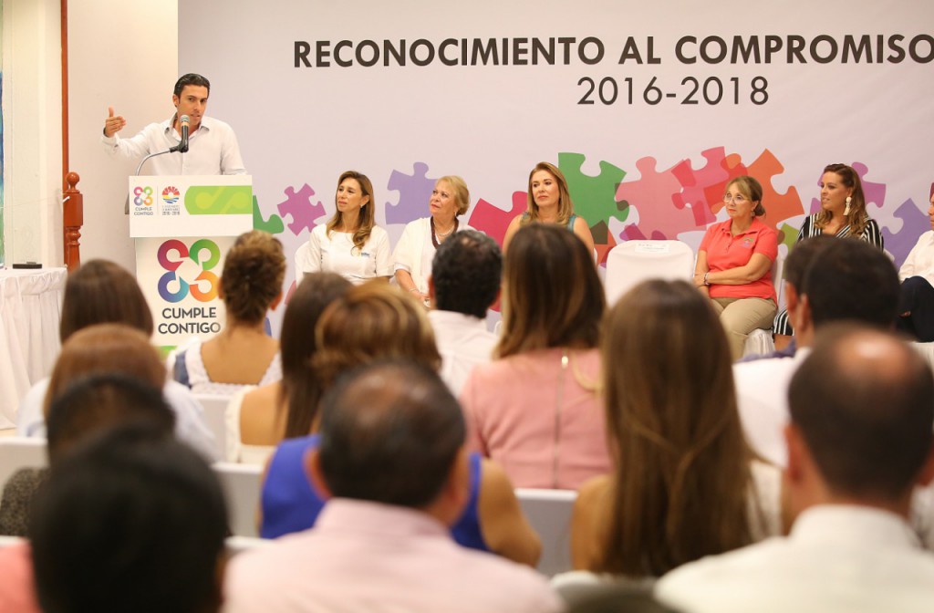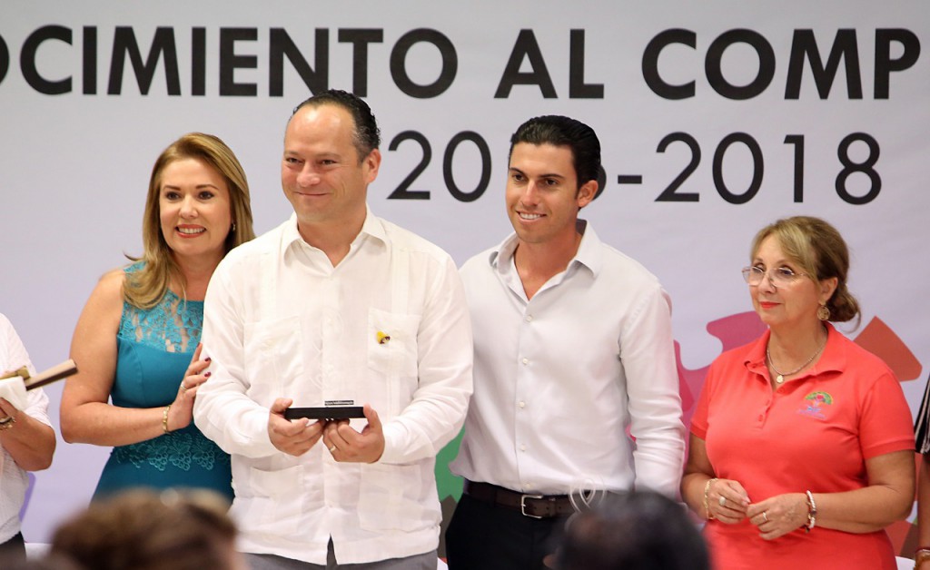 Cancún, Q. Roo, 29 de agosto de 2018.- La suma de esfuerzos entre la sociedad, las empresas y el gobierno siempre genera beneficios, sobre todo para los más vulnerables, afirmó el Presidente Municipal Remberto Estrada Barba, al encabezar la ceremonia de entrega de reconocimientos a donatarios y benefactores del DIF Benito Juárez.