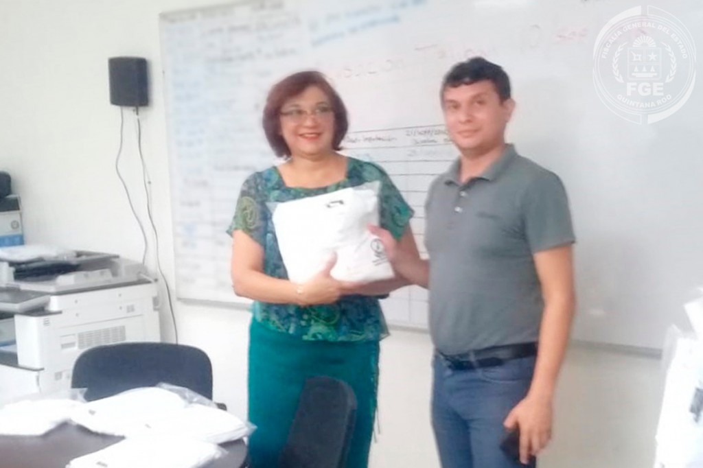 La Fiscalía General del Estado informa que, la Fiscal Especializada en Combate a la Corrupción, Rosaura Villanueva Arzápalo, entregó uniformes al personal que labora en este órgano, como parte de las acciones de mejoramiento del entorno laboral y permiti