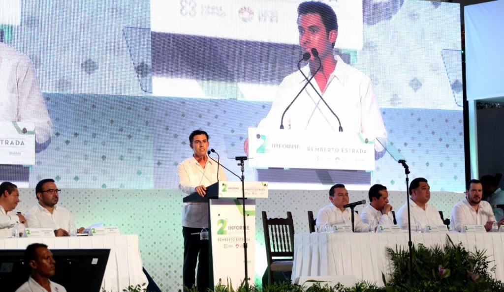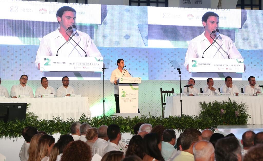 Cancún, Q. Roo, 14 de septiembre de 2018.- A punto de concluir esta administración, puedo decir que hace prácticamente dos años, asumí la responsabilidad más honrosa que he tenido en la vida, y siempre agradeceré la confianza de quienes creyeron en mí y en mi proyecto, expresó el Presidente Remberto Estrada Barba, al entregar este día su segundo y último informe de gobierno.