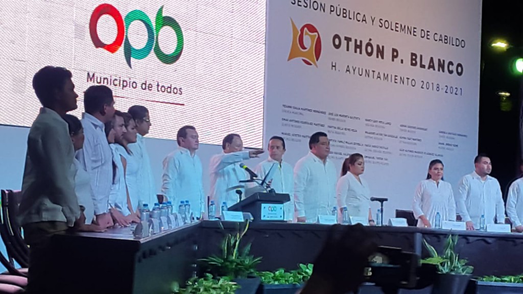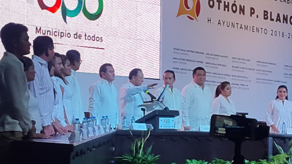Chetumal.- Desde las 00 horas se hoy domingo, en la capital del estado comenzó la maratónica jornada de tomas de protesta en las 11 presidencias municipales.