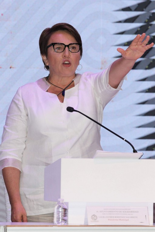 Solidaridad, Quintana Roo.- Laura Beristain Navarrete rindió protesta como presidenta municipal de Solidaridad, la tarde de este domingo 30 de septiembre durante la celebración de la Sesión Solemne de Instalación del Cabildo que gobernará en la administración 2018-2021.