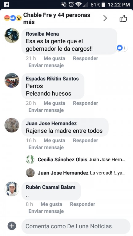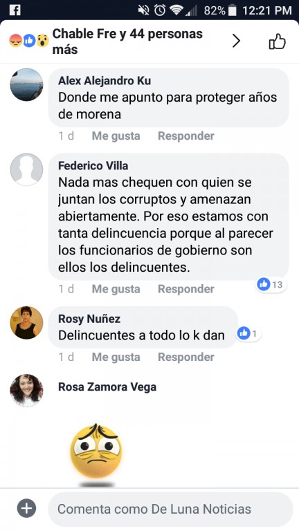 “Nada más chequen con quien se juntan los corruptos y amenazan abiertamente. Por eso estamos con tanta delincuencia, porque al parecer los funcionarios de gobierno son ellos los delincuentes”, aseveró otro.