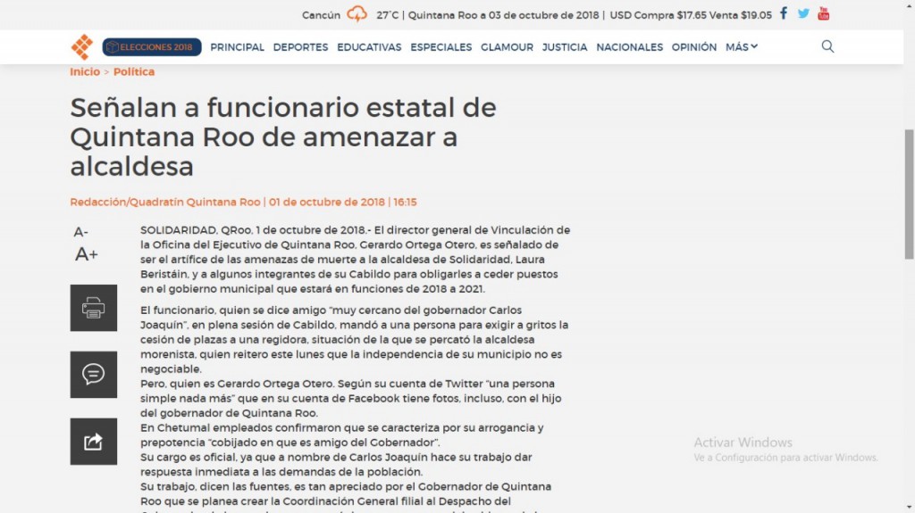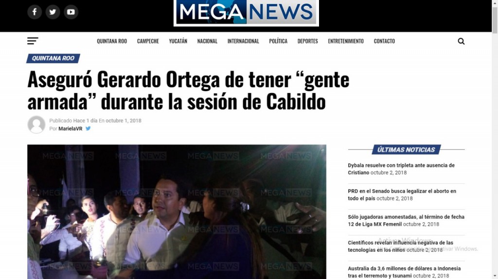 Playa del Carmen.- Las acusaciones en su contra de haber amenazado al equipo de una presidenta municipal en funciones, además de su aseveración de tener “gente armada” afuera de una sesión de cabildo, lista para actuar, hicieron que Gerardo Ortega Otero, funcionario del Gobierno del Estado, figurara en la prensa nacional.