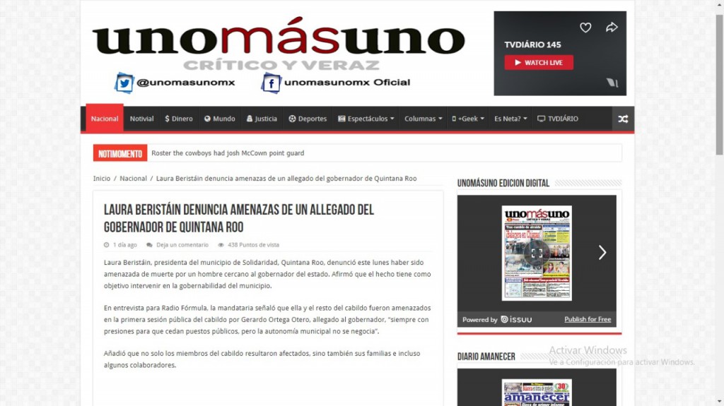 Prestigiosos portales como La Silla Rota, López Dóriga, Ciro Gómez Leyva para Imagen Televisión, Radio Fórmula y el periódico Uno Más Uno, son algunos de los medios de comunicación que informaron en distintas latitudes de nuestro país, el agresivo actuar del esposo de la regidora Samaria Angulo Sala.