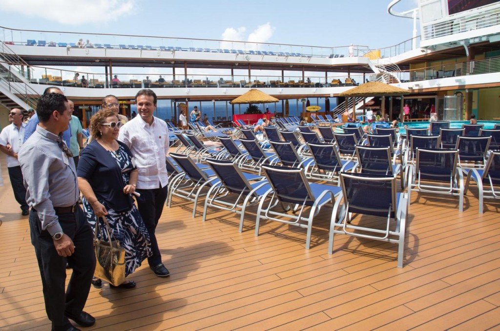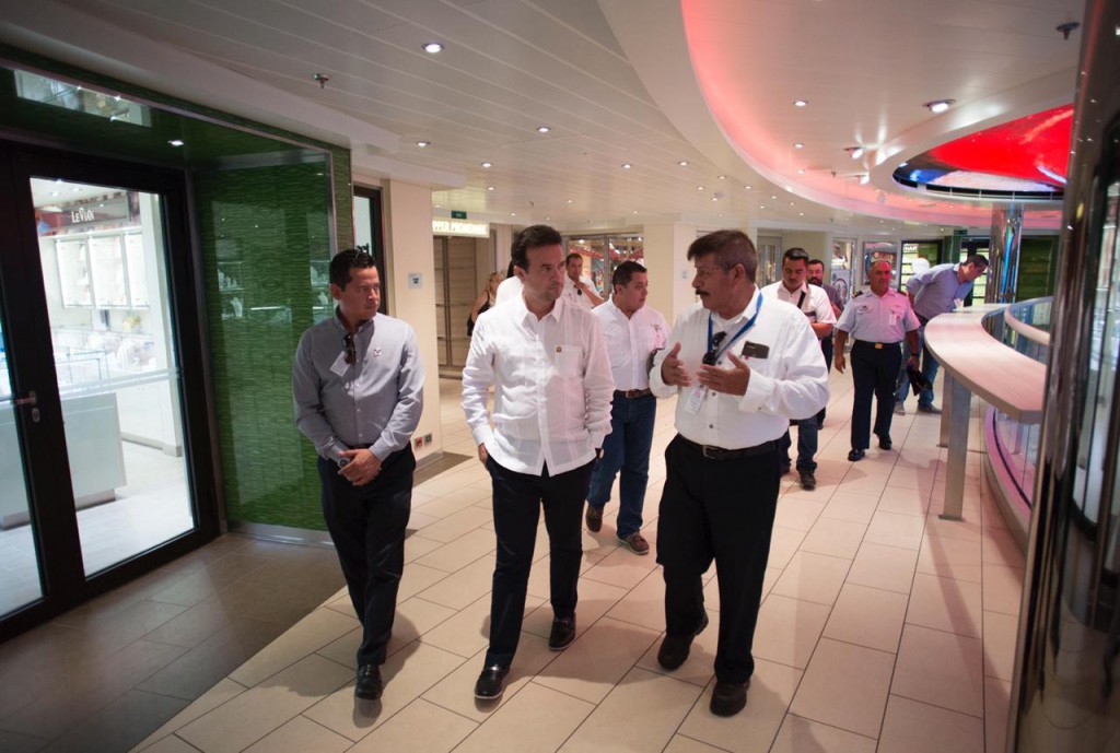 Tras realizar un recorrido por este hotel flotante, el Presidente Municipal destacó que con la presencia de este tipo de embarcaciones en la isla, se fortalece Cozumel como uno de los destinos de crucero más importantes a nivel mundial.