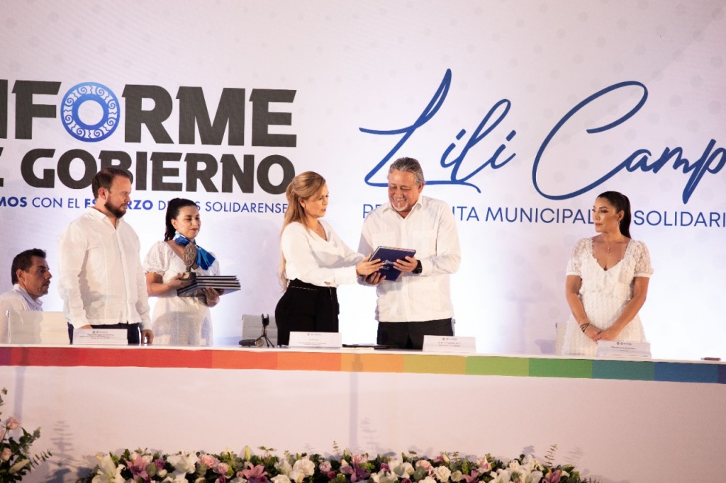 Playa del Carmen, Solidaridad, 12 de septiembre de 2022.- “En Solidaridad la renovación está en marcha para crecer de manera ordenada. Le estamos quitando el freno al municipio ¡y vamos en el sentido correcto!” expresó la presidenta Lili Campos al rendir hoy el Primer Informe de Gobierno.