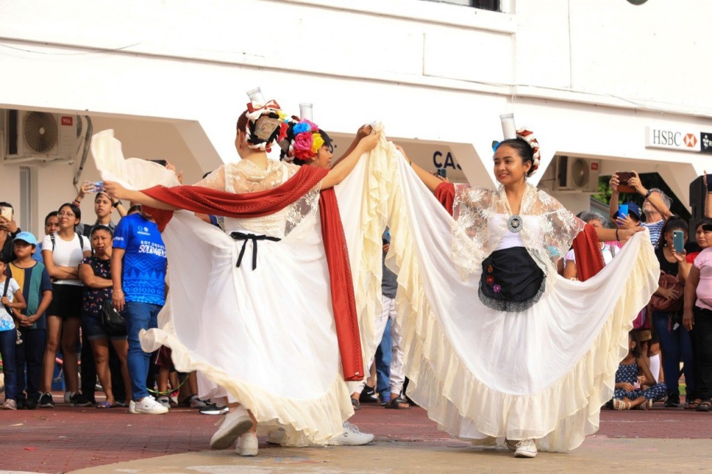 La columna inició en las inmediaciones de la unidad deportiva "Mario Villanueva” con la participación de 17 escuelas de los diferentes niveles educativos, 12 asociaciones y clubes deportivos, cuatro dependencias del gobierno municipal y la asociación de charros.