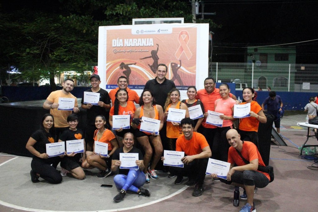 Acompañado del director deportivo del IDM, Alex Tun Pacheco, Gutiérrez Guigui agradeció a nombre de la presidenta Lili Campos la disposición de las y los entrenadores del programa Actívate y Renuévate por Solidaridad por participar mes a mes en el Día contra la Violencia de las Niñas y Mujeres, en cada una de las colonias de Playa del Carmen y la alcaldía de Puerto Aventuras.