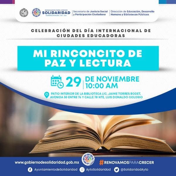 Basurto Campos explicó que Playa del Carmen, como miembro permanente de la Asociación Internacional de Ciudades Educadoras, comparte esta celebración con actividades lúdicas y educativas, las que se llevarán a cabo en el anfiteatro del DIF Municipal, la biblioteca “Jaime Torres Bodet” y en el Parque Fundadores. (Comunicado Oficial)