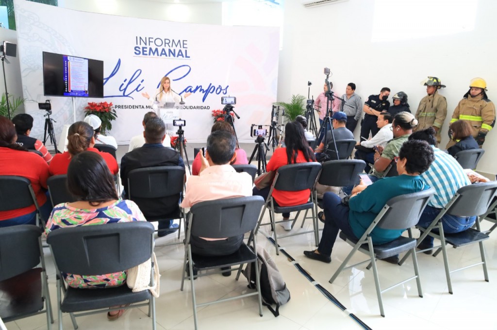 • Durante el informe semanal, la presidenta Lili Campos destaca avances en protección, seguridad, y anuncia más obra pública para seguir renovando Solidaridad