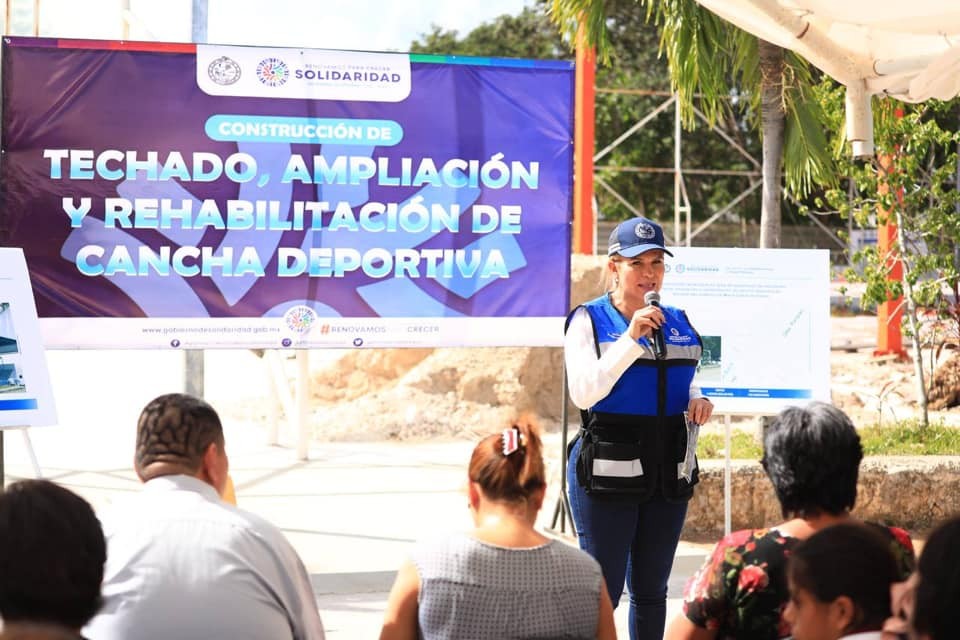 La edil solidarense dijo que este domo se construirá con inversión de cinco millones 054 mil 677 pesos; se rehabilitará y ampliará lo que era la cancha antigua, se colocará iluminación y las gradas para los estudiantes.