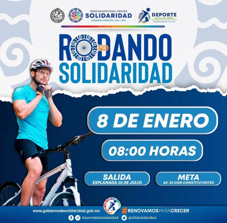 Playa del Carmen, Solidaridad, 3 de enero del 2023.- A fin de promover la activación física de las y los solidarenses con el uso de la bicicleta, patines, patinetas, a través del Instituto Municipal del Deporte (IDM), el gobierno de Lili Campos reactiva el programa “Rodando por Solidaridad”, cuya primera edición de este año será el domingo 8 de enero.