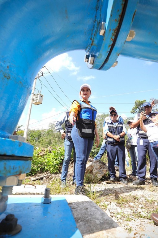 En compañía de directivos de Aguakan, la edil destacó que en siete años no se había realizado infraestructura como esta para mejorar el abastecimiento de agua en Solidaridad. “Trabajamos para darle solución sería e inmediata, lo que permitirá incremento en el suministro de 200 litros por segundo en la ciudad".